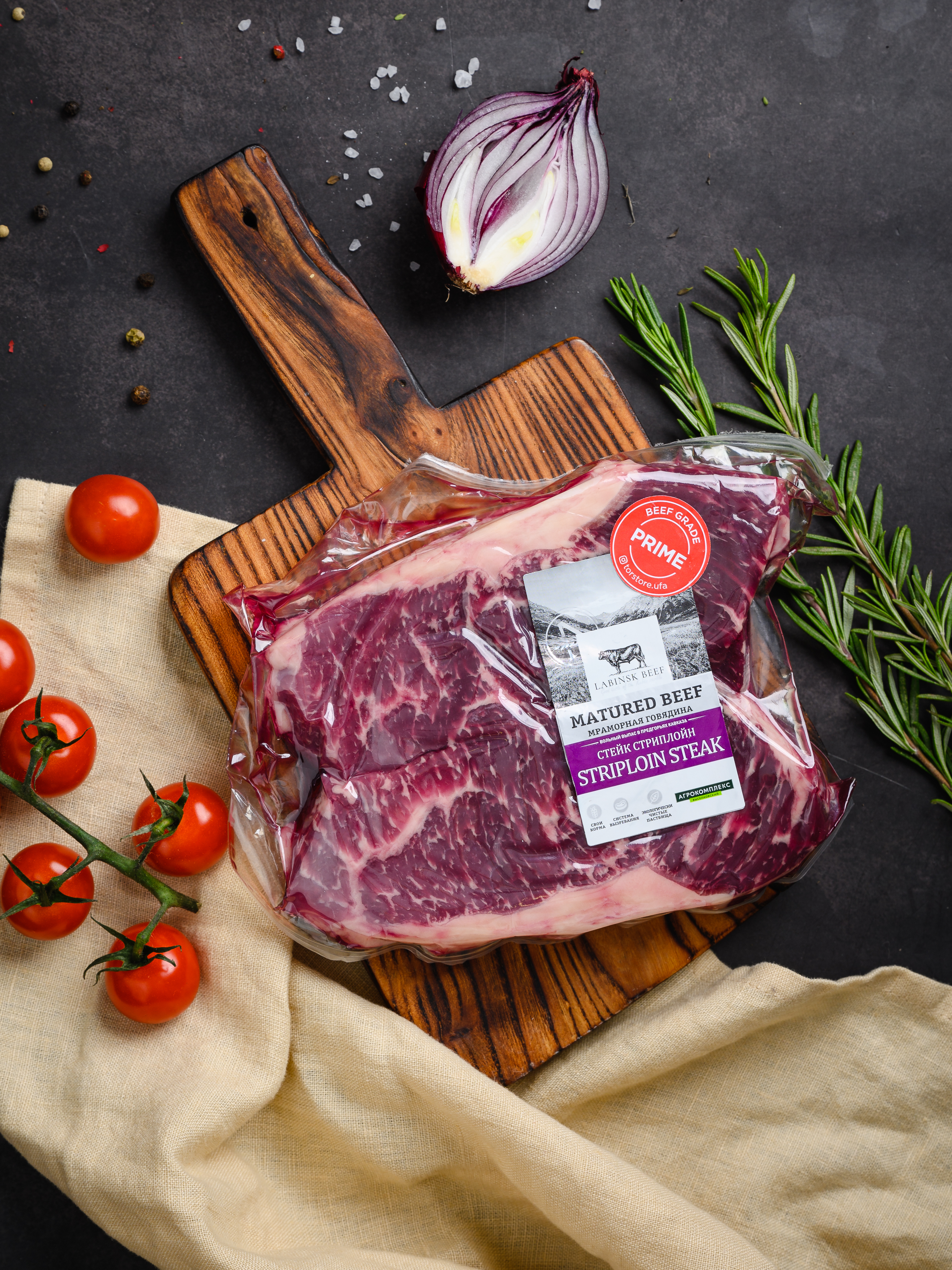 По названию стейка «Стриплойн» довольно сложно догадаться, из какой части говяжьей туши он делается. Второе наименование блюда — стейк New York — особой ясности в ситуацию тоже не вносит. Однако любой классный шеф-повар, не задумываясь, укажет на поясничный отруб или, как его еще именуют, тонкий край. При этом, чтобы приготовить «Стриплойн», мраморную говядину обычно нарезают на куски толщиной 2-3 см. Так мясо быстро дойдет до кондиции и не утеряет упругую текстуру.