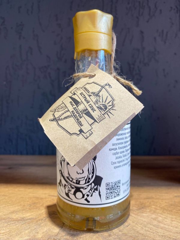 Соус из огненно острых перцев. Тепло перцев вида capsicum chinense отличается от привычных нам сортов типа "огонёк." Оно греет медленно, наполняя теплом Юга России, где выращены эти ароматные и вкусные плоды. Состав: перечное пюре, пюре из замороженных персиков и лимона, сахар.