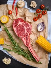 В нашем интернет-магазине вы можете купить стейк Томагавк из мраморной говядины толщиной 2-3 см. В подарок к мясу мы пришлем вам ароматную веточку розмарина. Используйте ее для приготовления стейка – она отлично оттенит вкус мяса и сделает его еще аппетитнее! Заказать стейки можно с доставкой по городу Уфа и загород. Мы отвечаем за высокое качество продуктов. Побалуйте себя и своих близких изысканными и питательными мясными деликатесами!